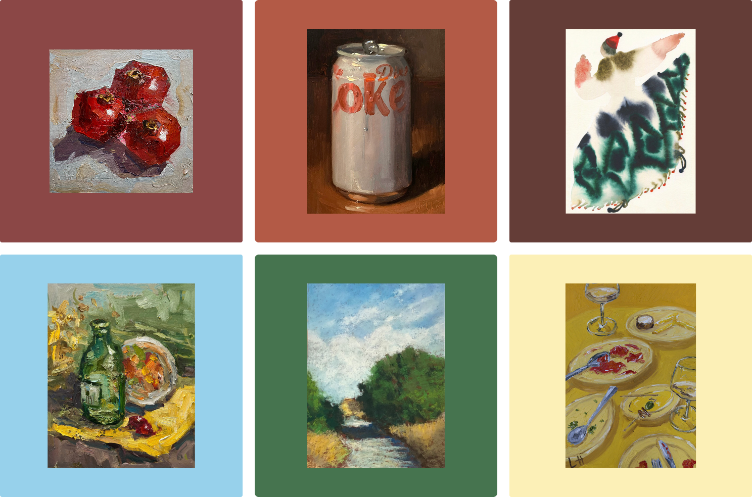 Pomegranate imposto still life / Diet Coke still life / Green dancer print / Bottle still life oil painting / Original landscape painting / Libby Haines Dinner Remnants print